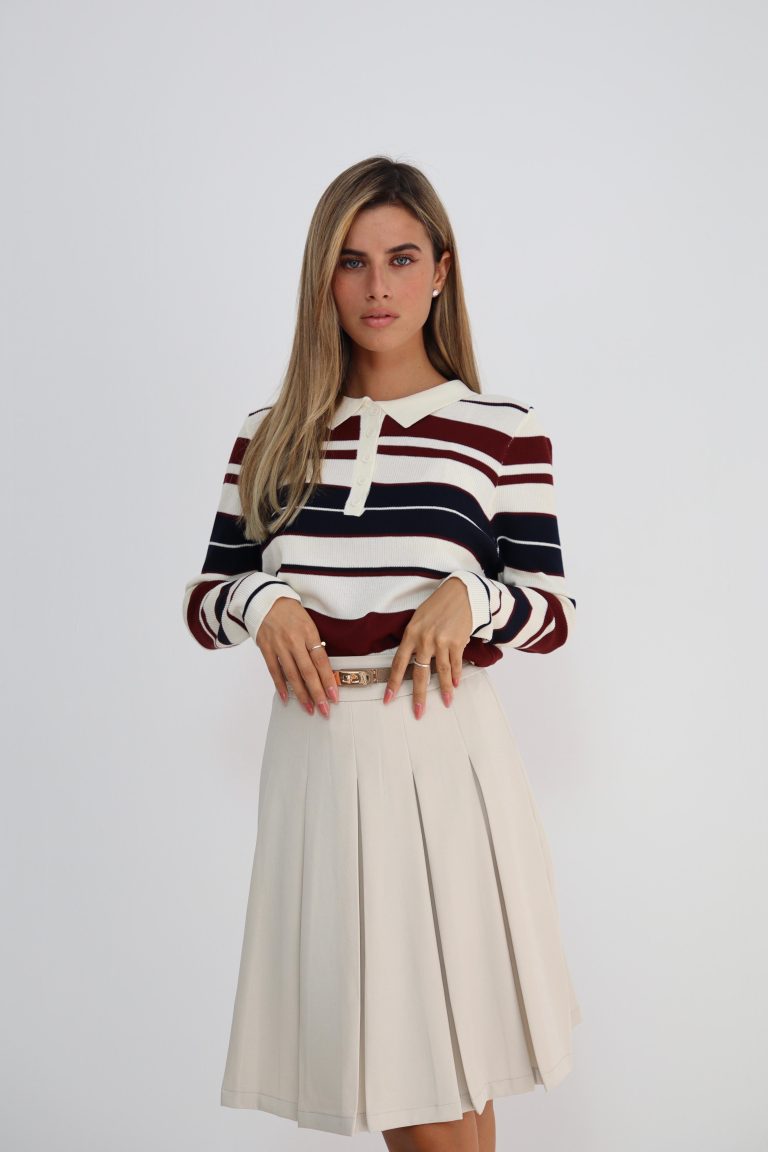 חולצות כדורגל סריג עדין פסים בורדו-לבן
