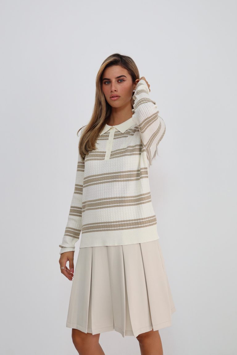 חולצות כדורגל סריג עדין פסים חום בהיר