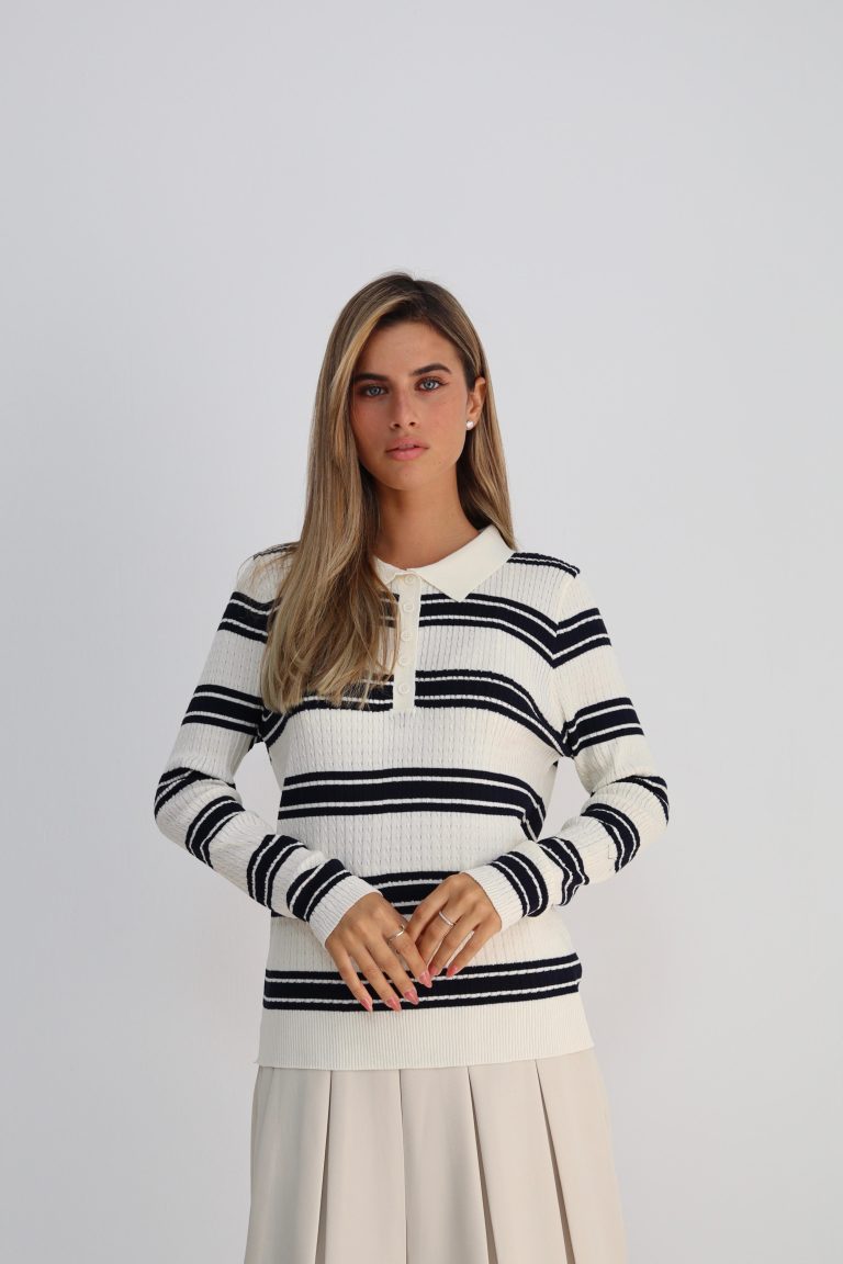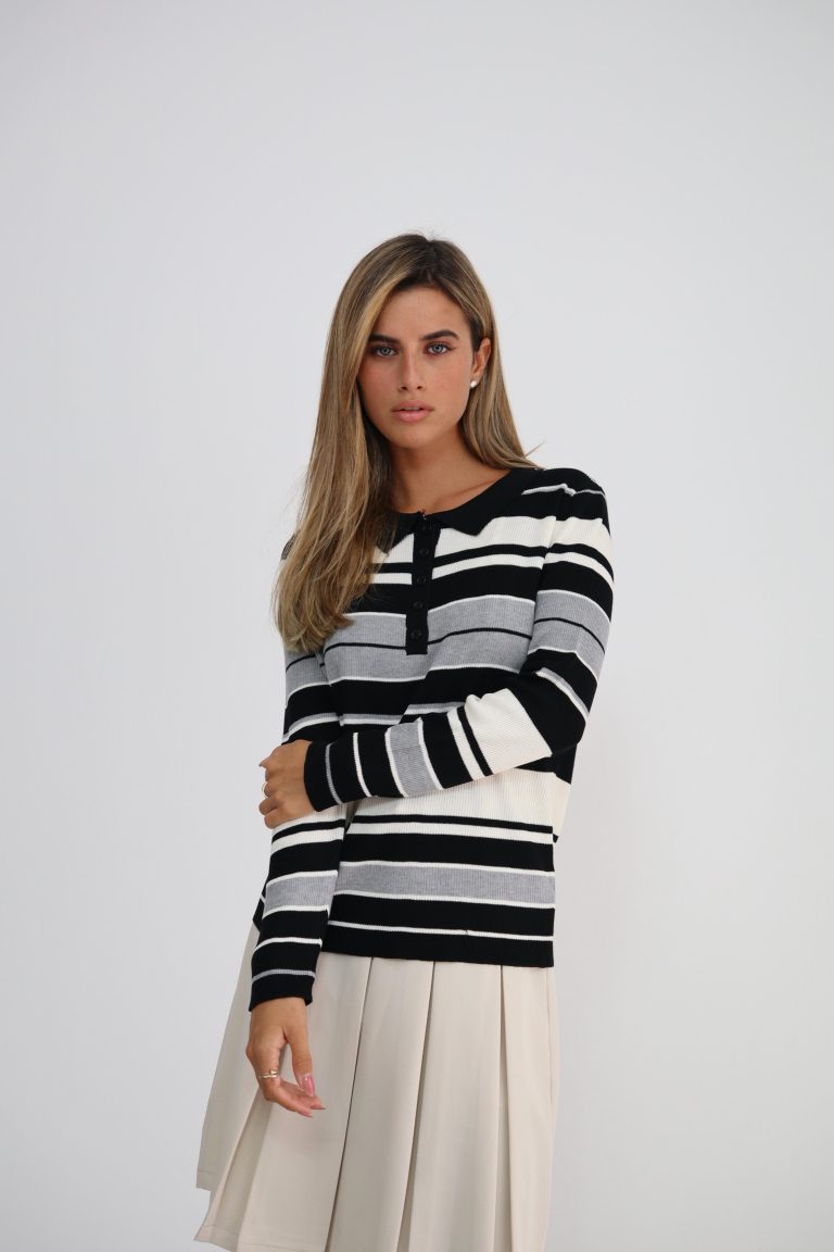 חולצות כדורגל סריג עדין פסים שחור-לבן