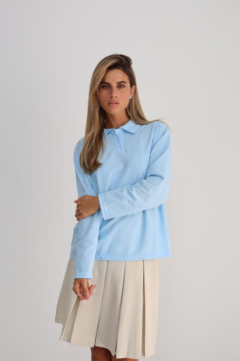 חולצת צווארון מבד לקוסט תכלת