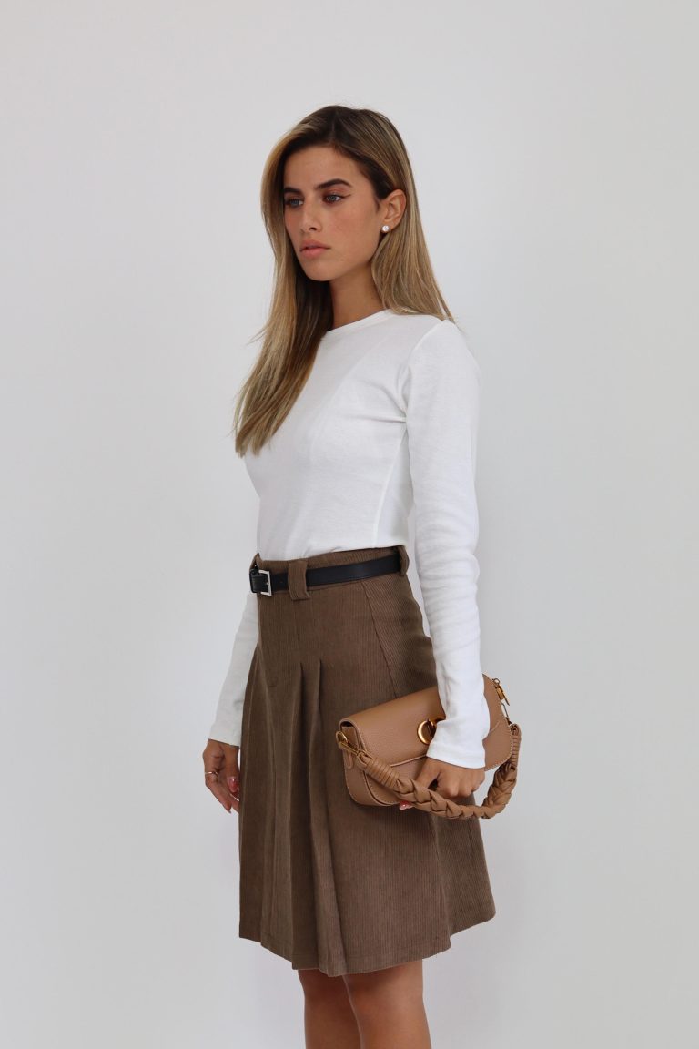 חצאית פליסה סריג חום
