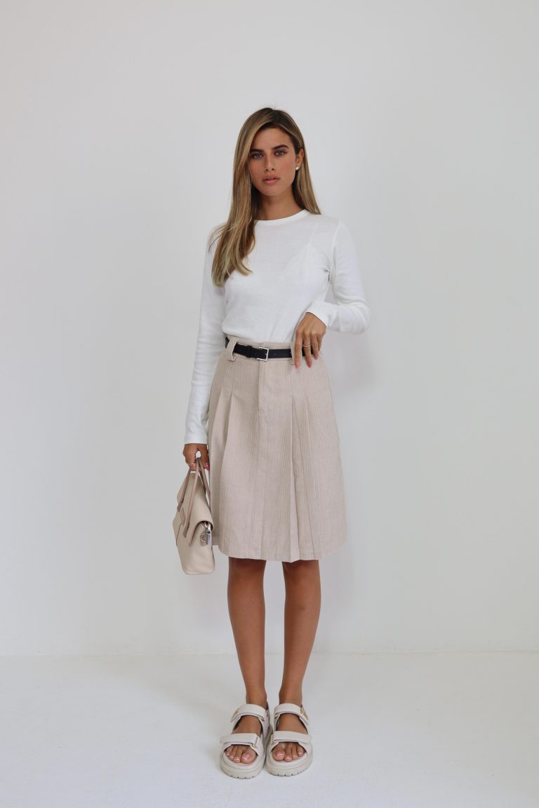 חצאית פליסה סריג שמנת