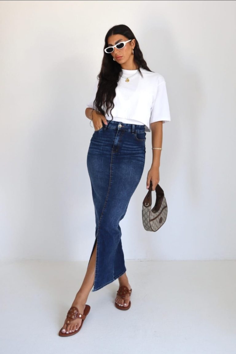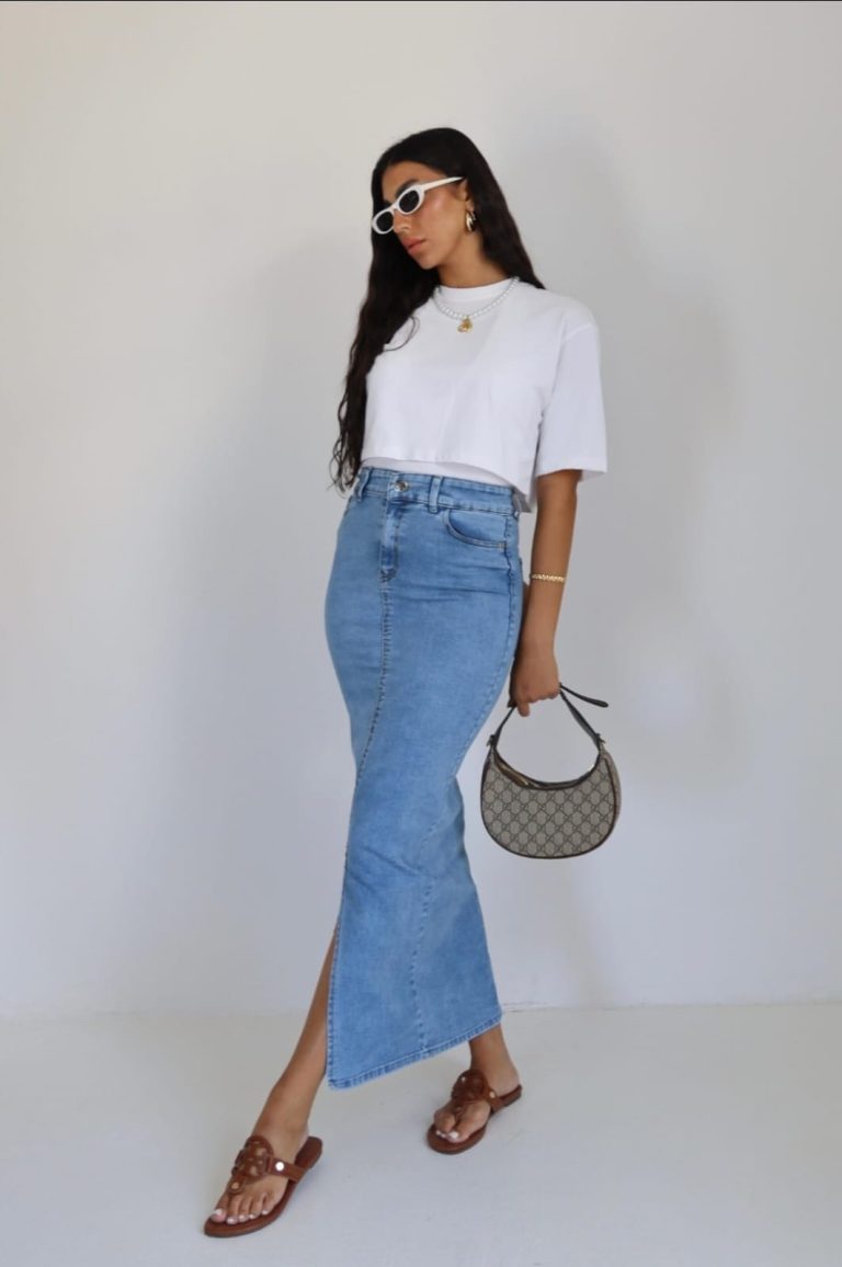 חצאית ג׳ינס שסע תכלת