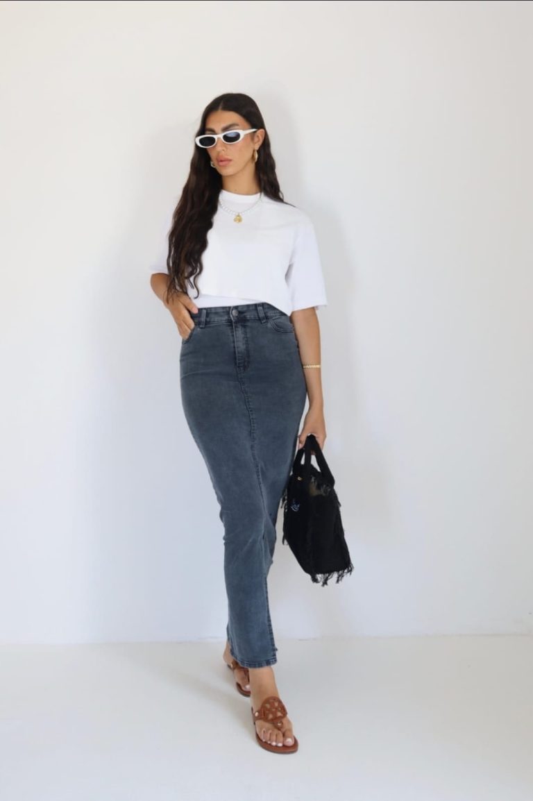 חצאית ג׳ינס שסע אפור