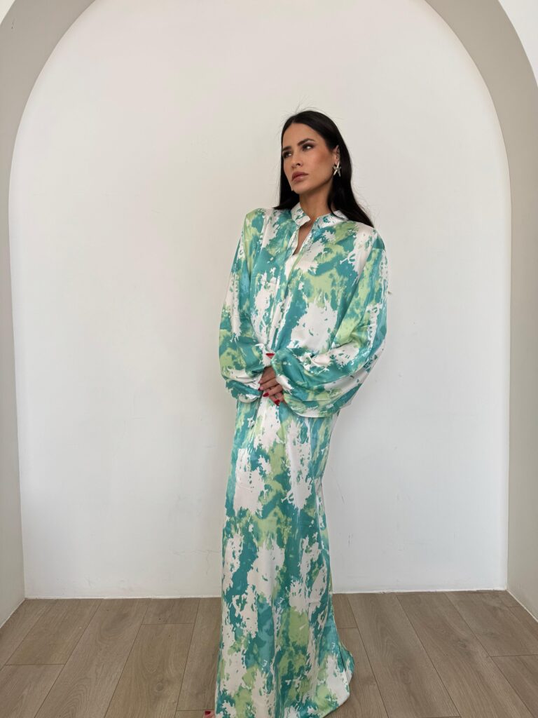 שמלת מקסי משי סאטן ירוק