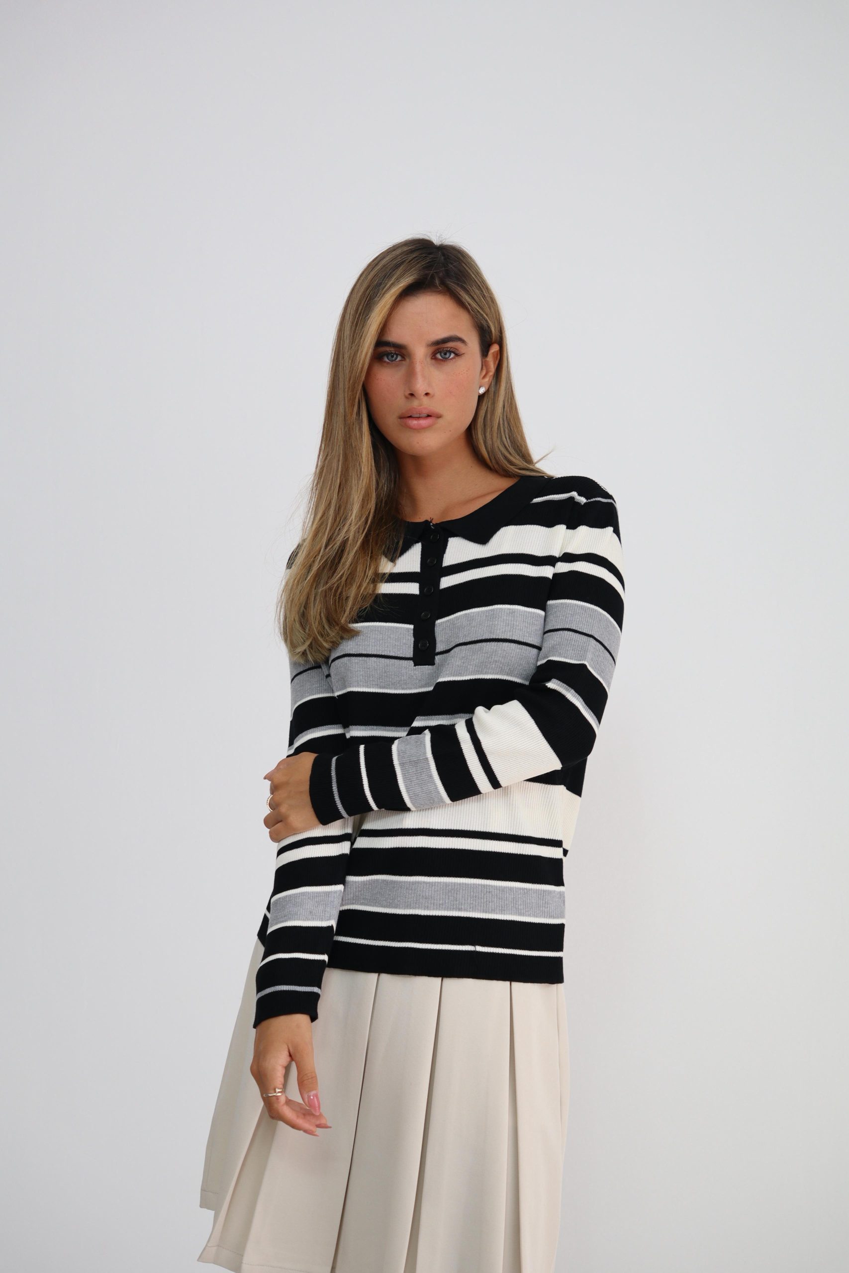 חולצת סריג עדין בסגנון כדורגל עם פסים היא פריט שישדרג כל לוק