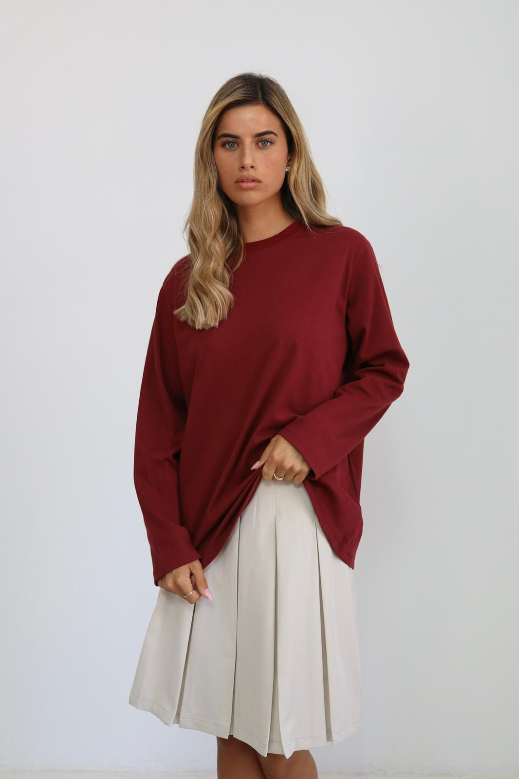 חולצת בייסיק ארוכה היא פריט חובה בארון של כל אחת 🤍 גזרה נקייה ובד רך שנשפך על הגוף בצורה מושלמת, מעניקים מראה נינוח ואלגנטי בקלות ✨ מושלמת עם ג׳ינס, טייטס או חצאית – פשוט מתאימה לכל סיטואציה 👌
