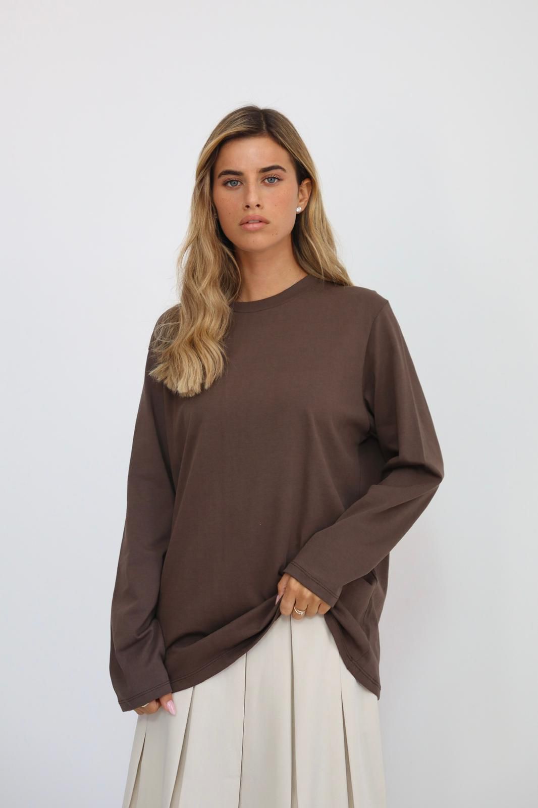 חולצת בייסיק ארוכה חום