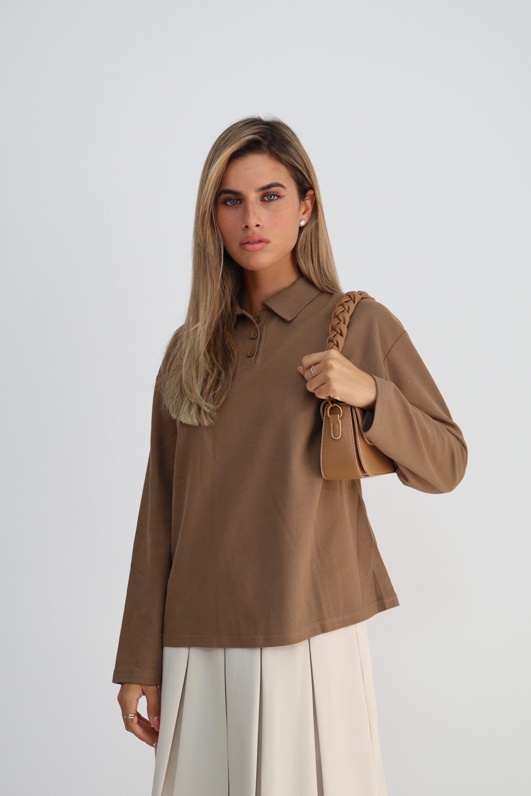 חולצת צווארון מבד לקוסט חום
