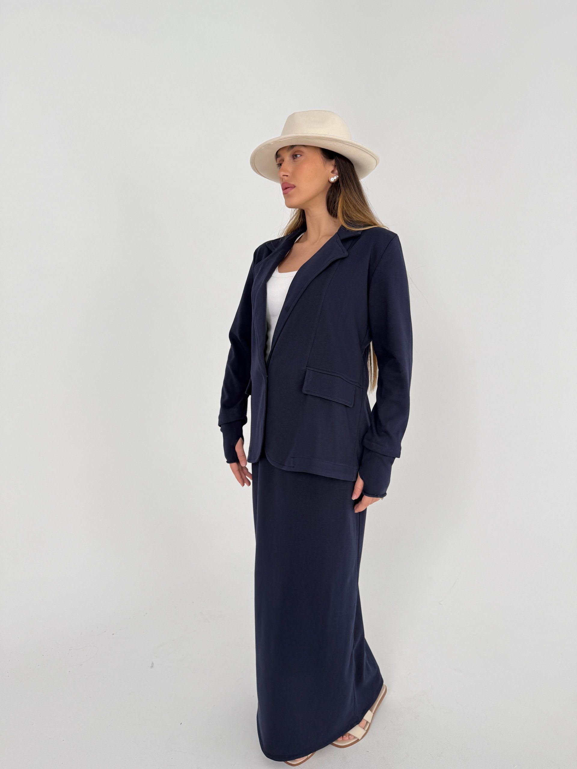 חליפת ג׳קט פרנץ׳ טרי כחול