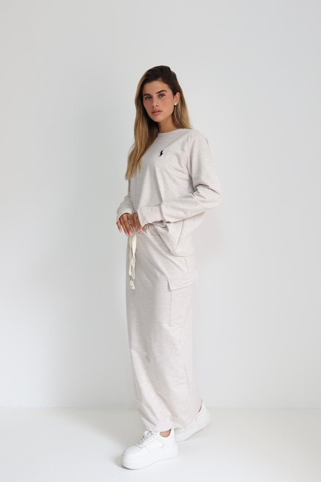 חליפת פרנץ’ טרי עם חצאית דגמ”ח אבן