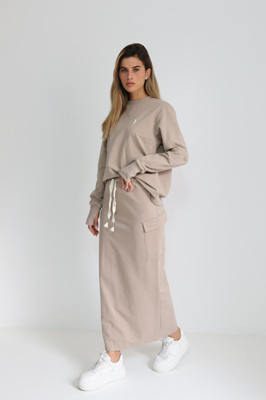 חליפת פרנץ’ טרי עם חצאית דגמ”ח עדין חליפה מהממת מבד פרנץ’ טרי איכותי ונעים, כוללת חצאית בגזרת דגמ”ח עדינה ומחמיאה למראה צעיר ואופנתי.