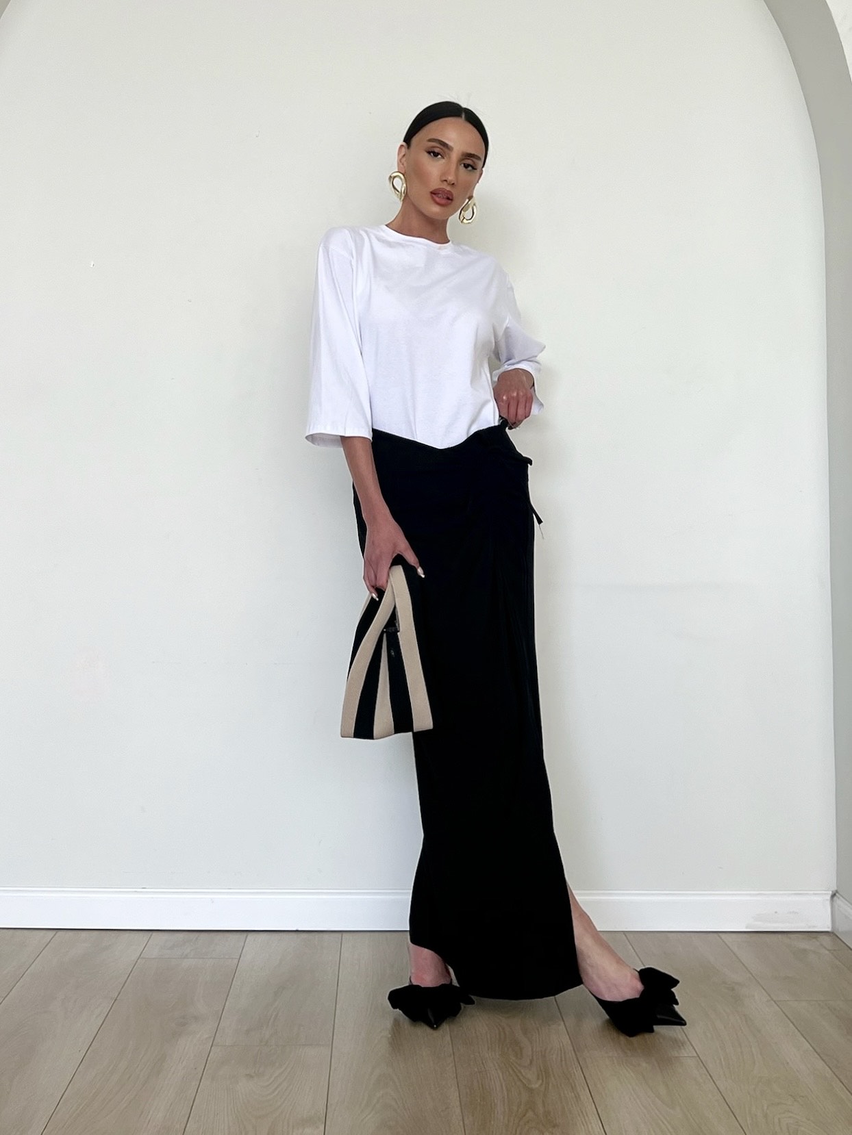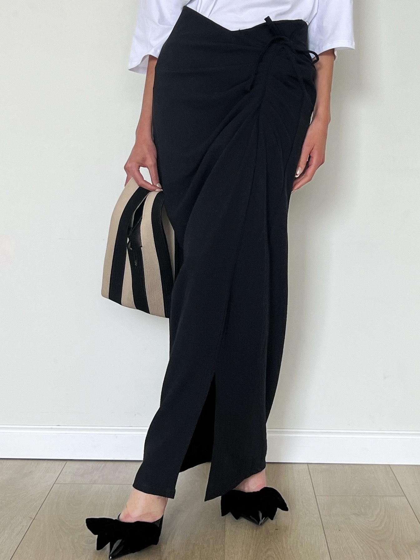 חצאית מקסי מבד פישתן, שסע קטן בצד וכיווצץ בצד החצאית.