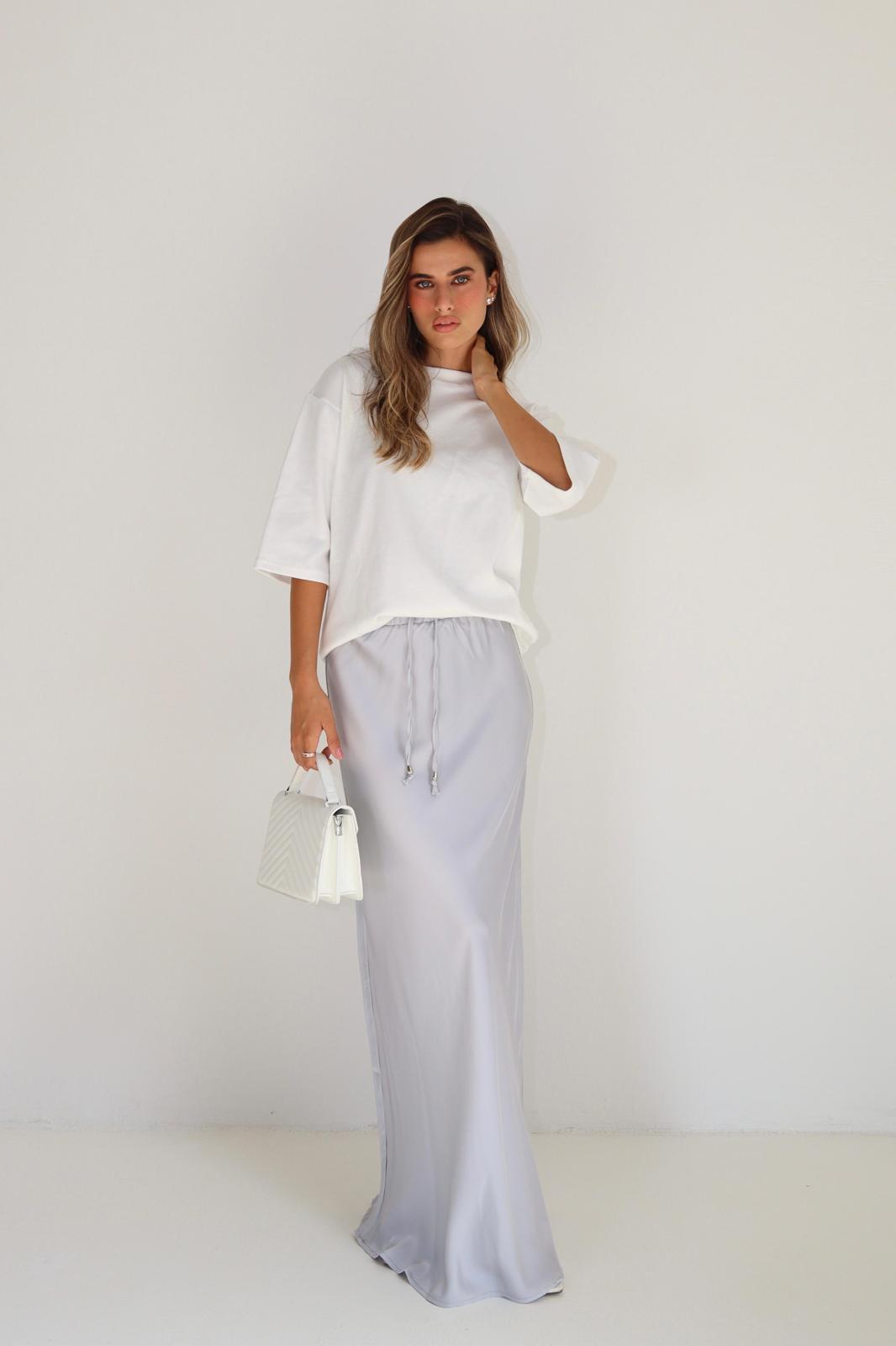 בד סאטן נעים ונופל, בגזרה מושלמת שמחמיאה לכל מידה וצורת גוף – מהדקיקות ועד השופעות. ארוכה ונשפכת.