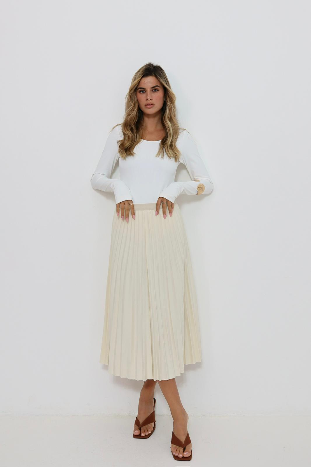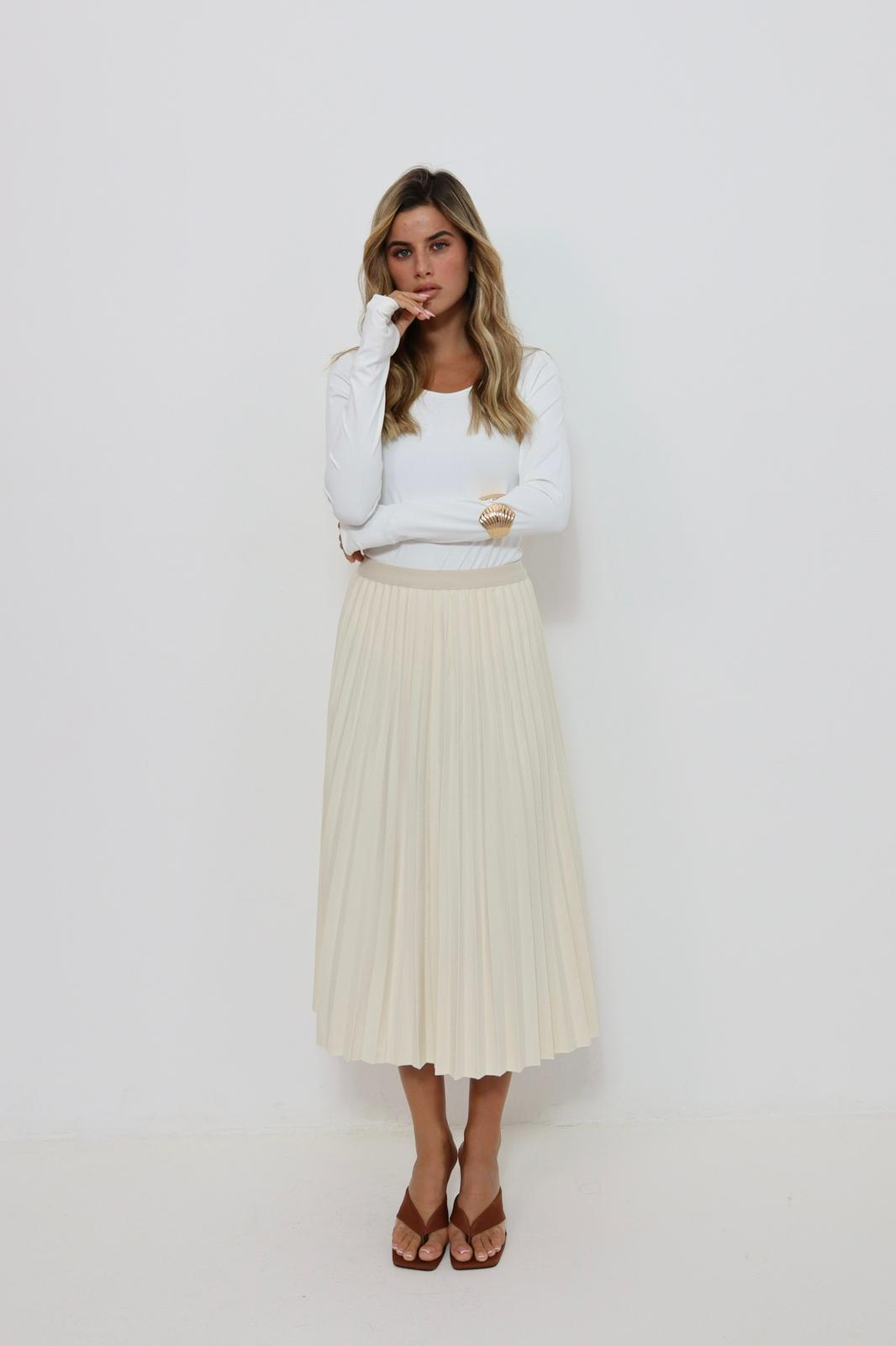חצאית פליסה סריג שמנת