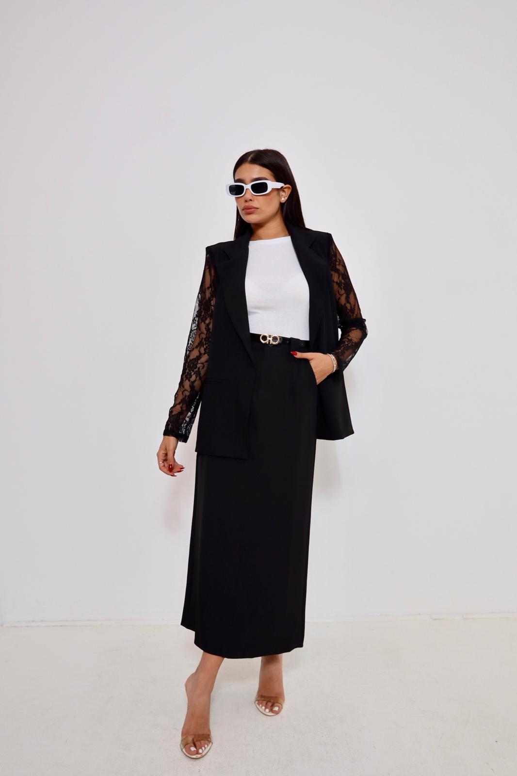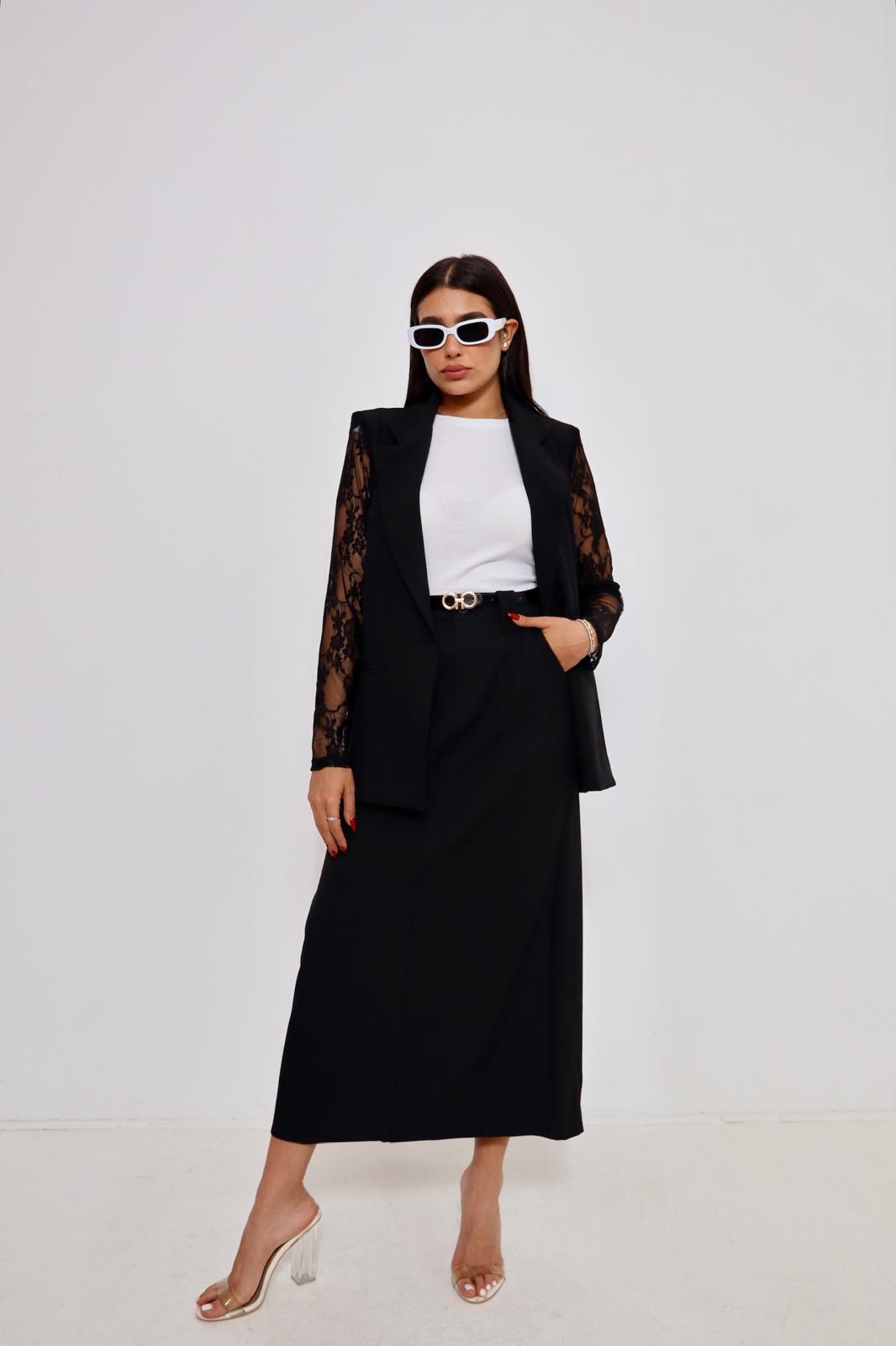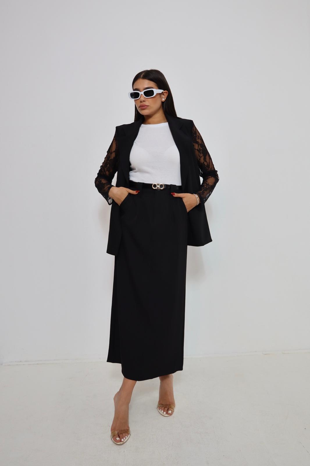 חצאית קלאסית שחורה בשילוב חגורה