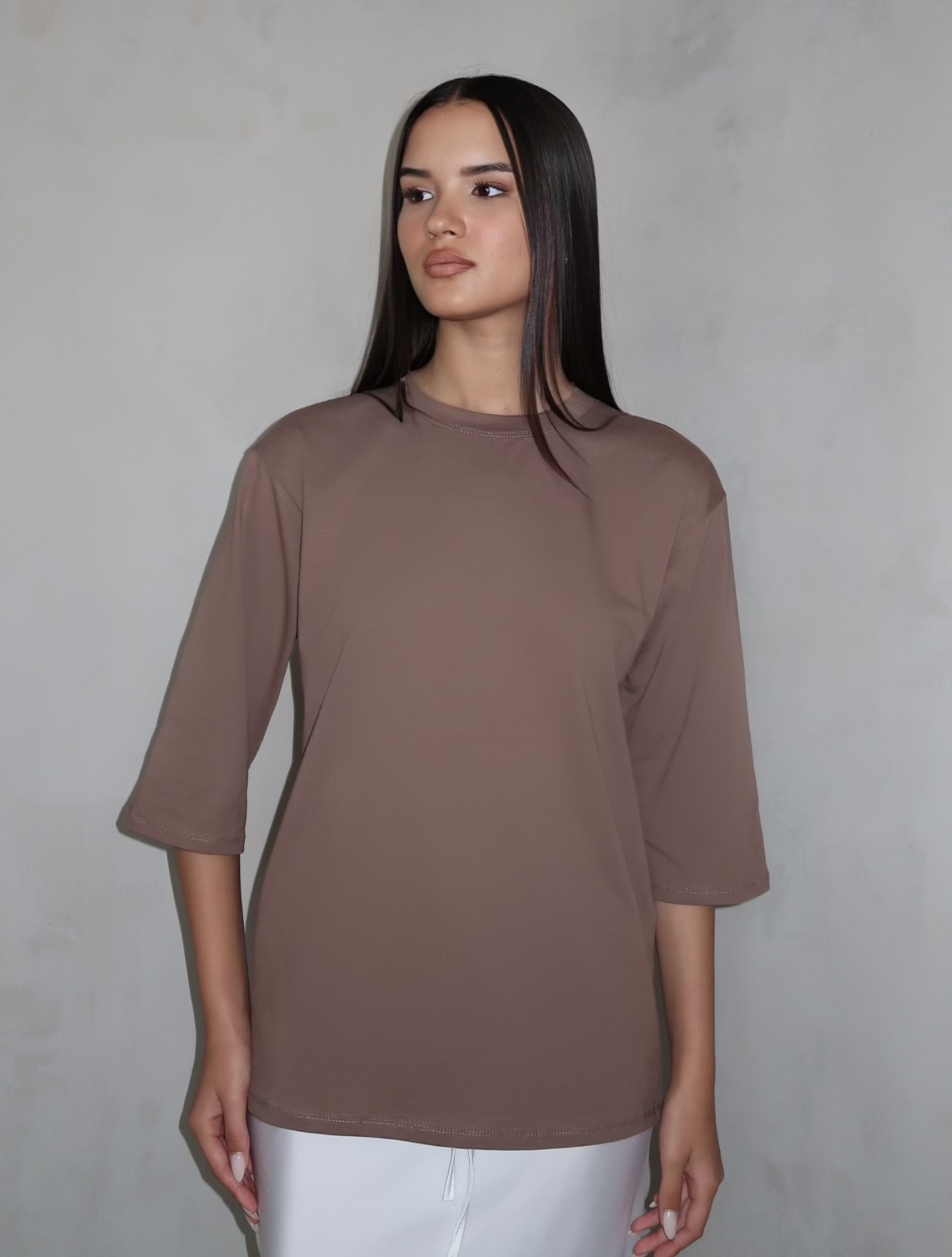 טי שרט בייסיק 3/4 בגזרת אובר סייז עוברת מרפק, טי שרט שהיא חובה בארון שלך מתאימה עם ה כ ל !