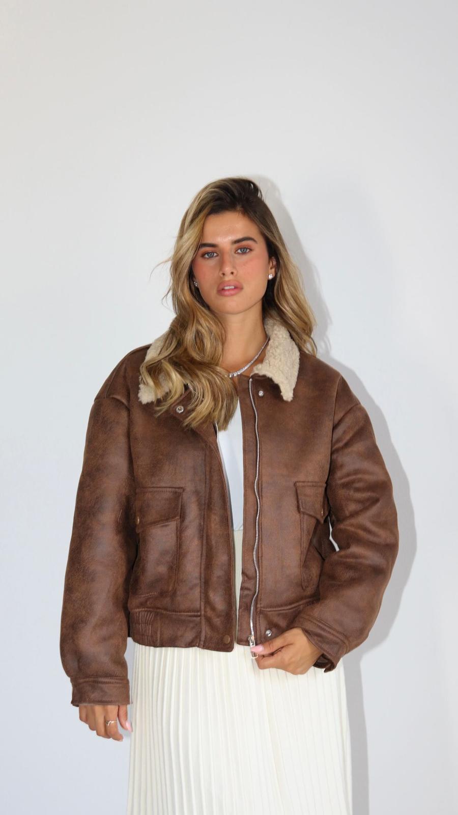 מעיל אוולין חום עם שילוב פרוותי