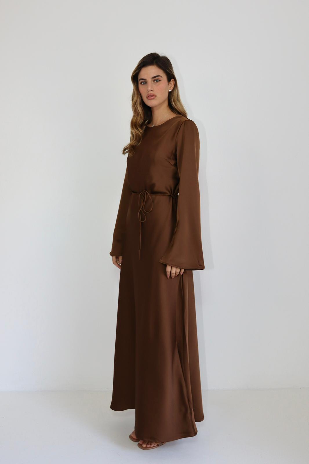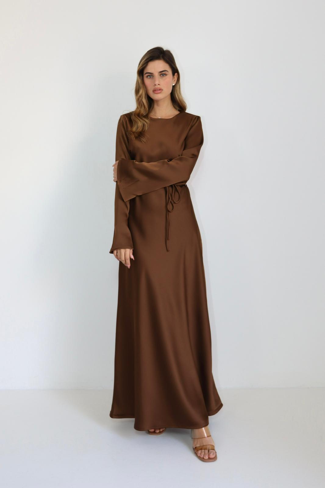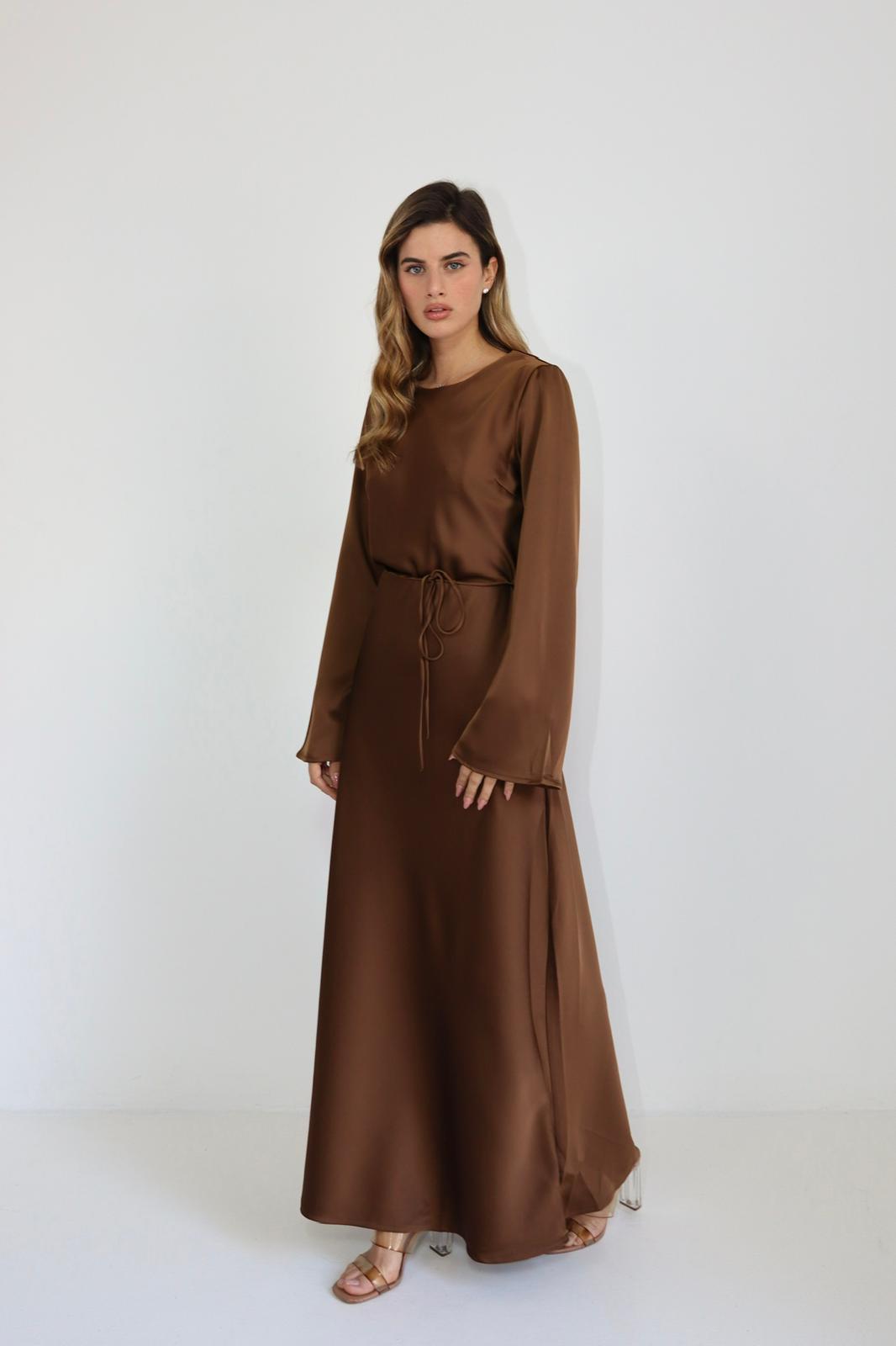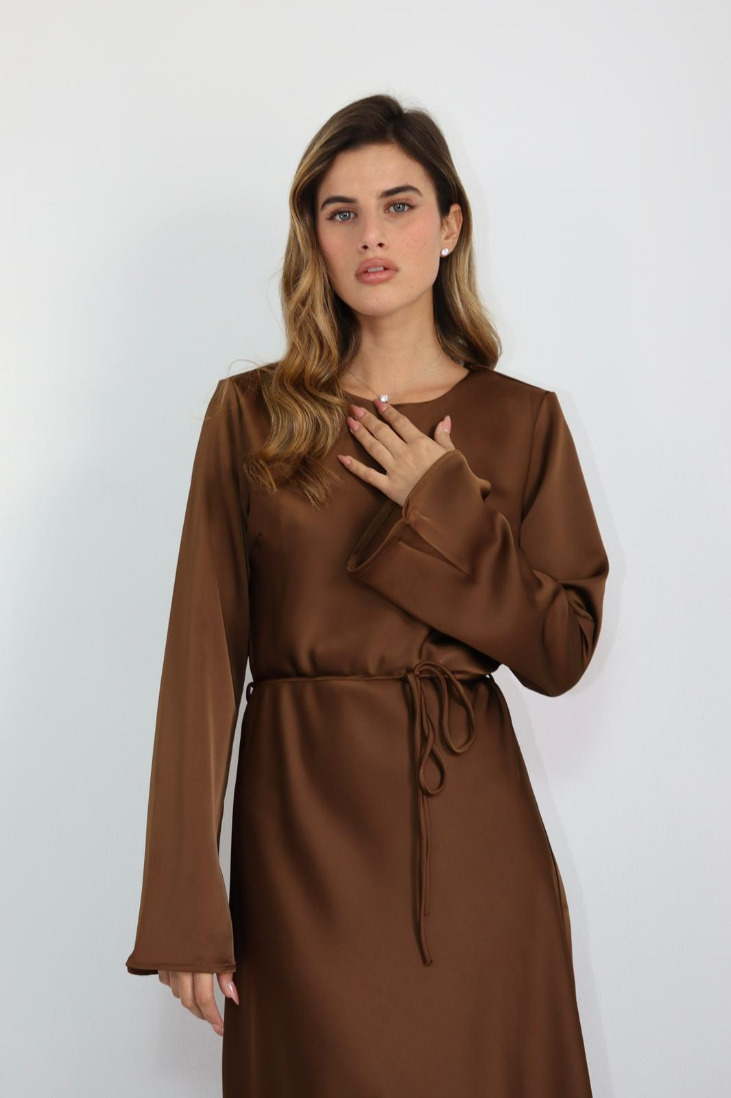 / שמלת מקסי מבד משי סאטן חום