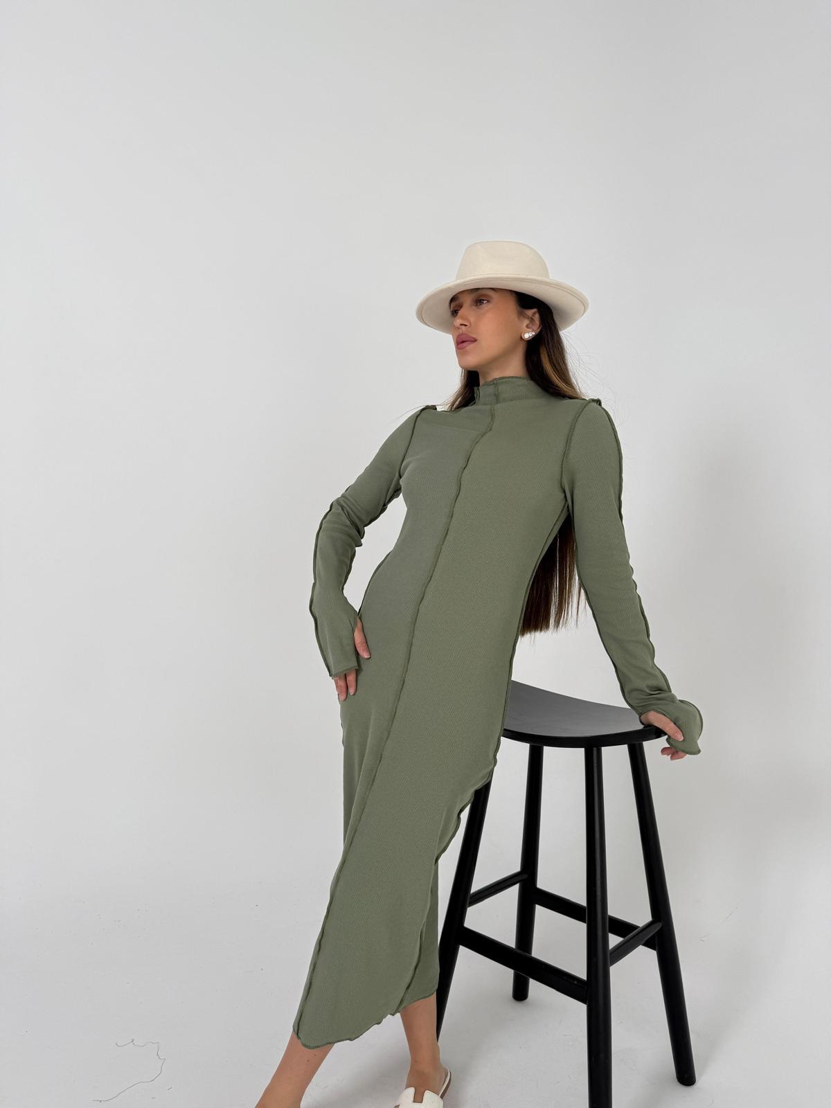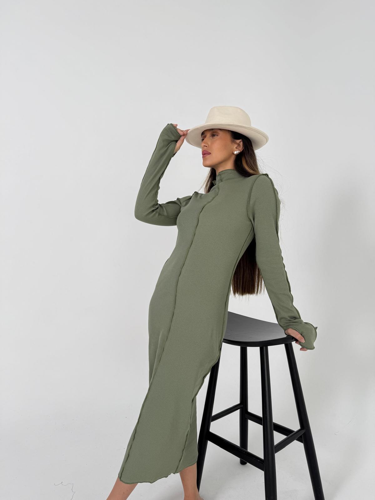 שמלת פס ריב צמודה ירוק