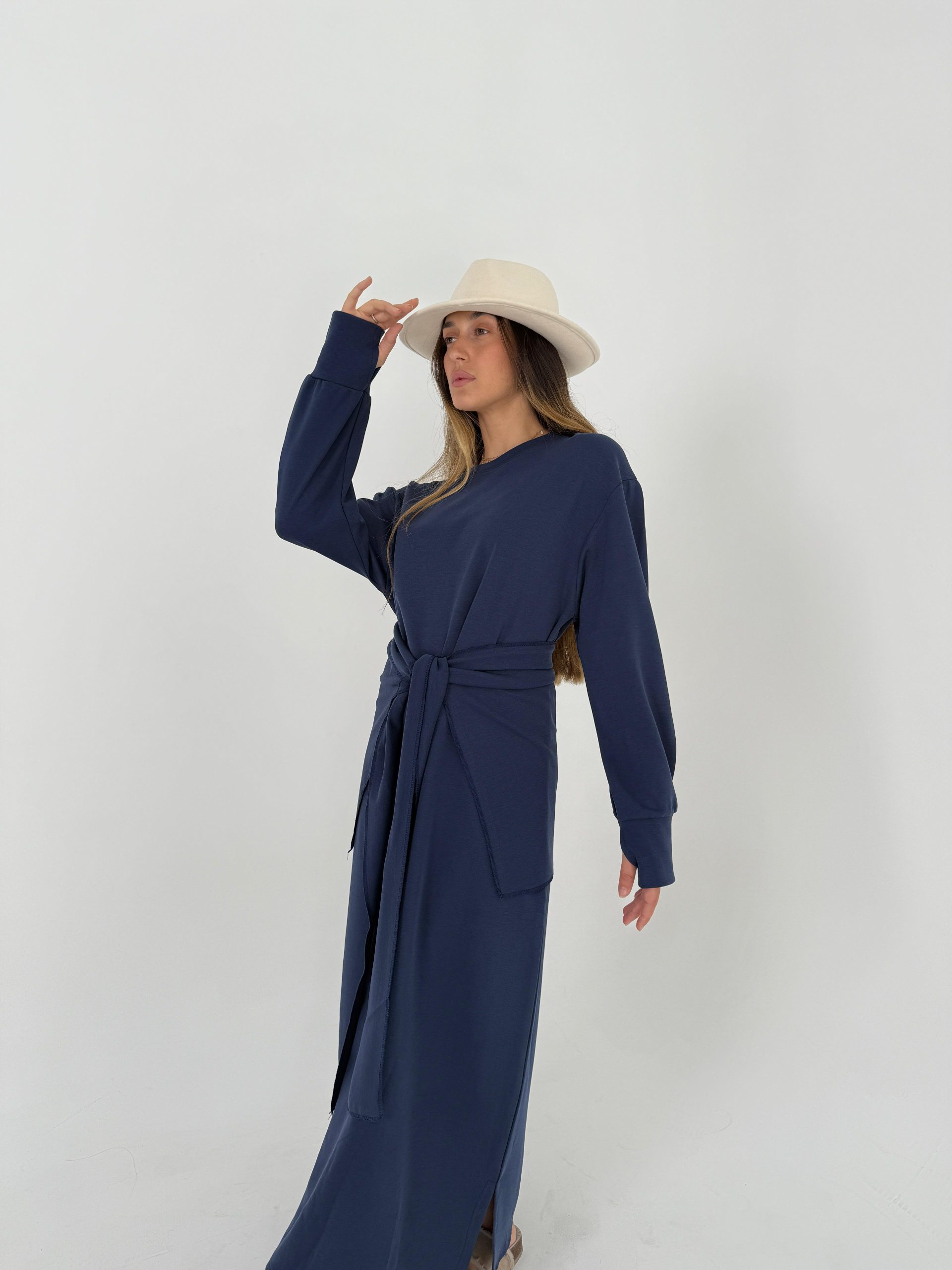 שמלת קשירה “כפפה” כחול